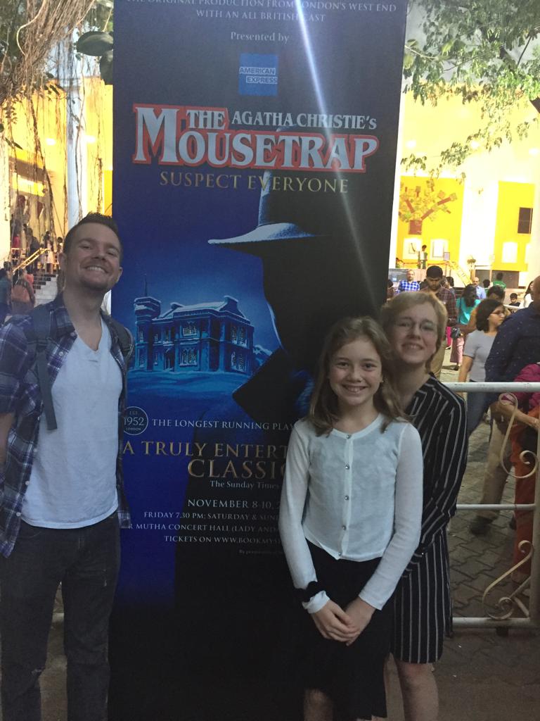 When Nimmi and i were discussing my upcoming move over the summer, she mentioned that she had a few connections to other westerners living in Chennai whom she could introduce me to. About three weeks after i arrived, she made good on that promise by introducing me to Jodie Sovak, an administrator at the American International School in Chennai (AISC).22 After chatting for a bit at the office and exchanging WhatsApp numbers, she mentioned that she and her family were going to see a play that weekend, and she told me i’d be more than welcome to join them. Not only did they treat me to a stellar performance of The Mousetrap, they also invited me to join them for a pre-show all-you-can-eat lunch at the incredibly luxe Leela Palace hotel 😍
