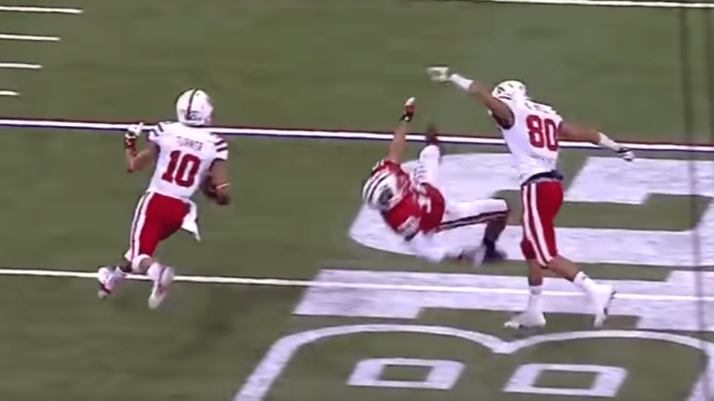 American football tackle: https://www.youtube.com/watch?v=v-1MQ0Cnbhs&t=6s